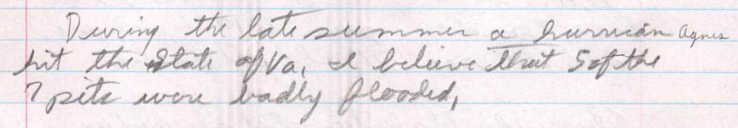 During the late summer, Hurricane Agnes hit the state of VA, I believe that 5 of the 7 pits were badly flooded.